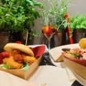 Gamberoni, baccalà, pesce spada ricciola abbinati a salse fatte a mano come la maionese al wasabi, e accostati a ingredienti saporiti come la burrata, la stracciatella, i datteri e i capperi. Tutti i piatti sono accompagnati dalle patatine artigianali preparate al momento