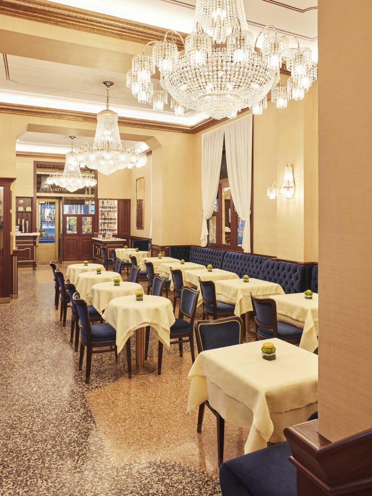 Quest’anno ci sono stati tre mesi di lavoro dedicati al restyling, con un intervento volto a valorizzare l’identità di Cova, pur dando un tocco di nuovo. E’ stato mantenuto “il cuore del locale”, come lo storico pavimento in mosaico all’ingresso, gli specchi dorati, i divanetti in velluto e i lampadari in cristallo. E’ rimasto lo storico e originale bancone in mogano lucido, decorato da un ripiano in marmo italiano. Sono state invece completamente rinnovate le cucine, in linea con gli ultimi standard tecnologici. Ampliato il lato di S.Andrea eprevisto l’utilizzo della corte interna disegnata alla fine del diciassettesimo secolo dal celebre architetto neoclassico Giuseppe Piermarini.