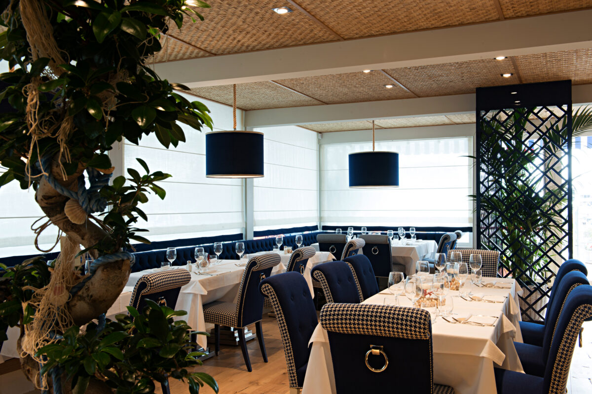 Un progetto di gastronomia raffinata sia nella scelta dei prodotti portati sulla tavola, che nell’estetica del locale, elegante, accogliente, curatissimo nei dettagli, come i tessuti pregiati usati a rivestimento di sedie e divani, le tovaglie, le lampade, nulla è lasciato al caso e l’atmosfera è marinara e lussuosa al contempo ma sa essere anche goliardica nelle occasioni giuste.