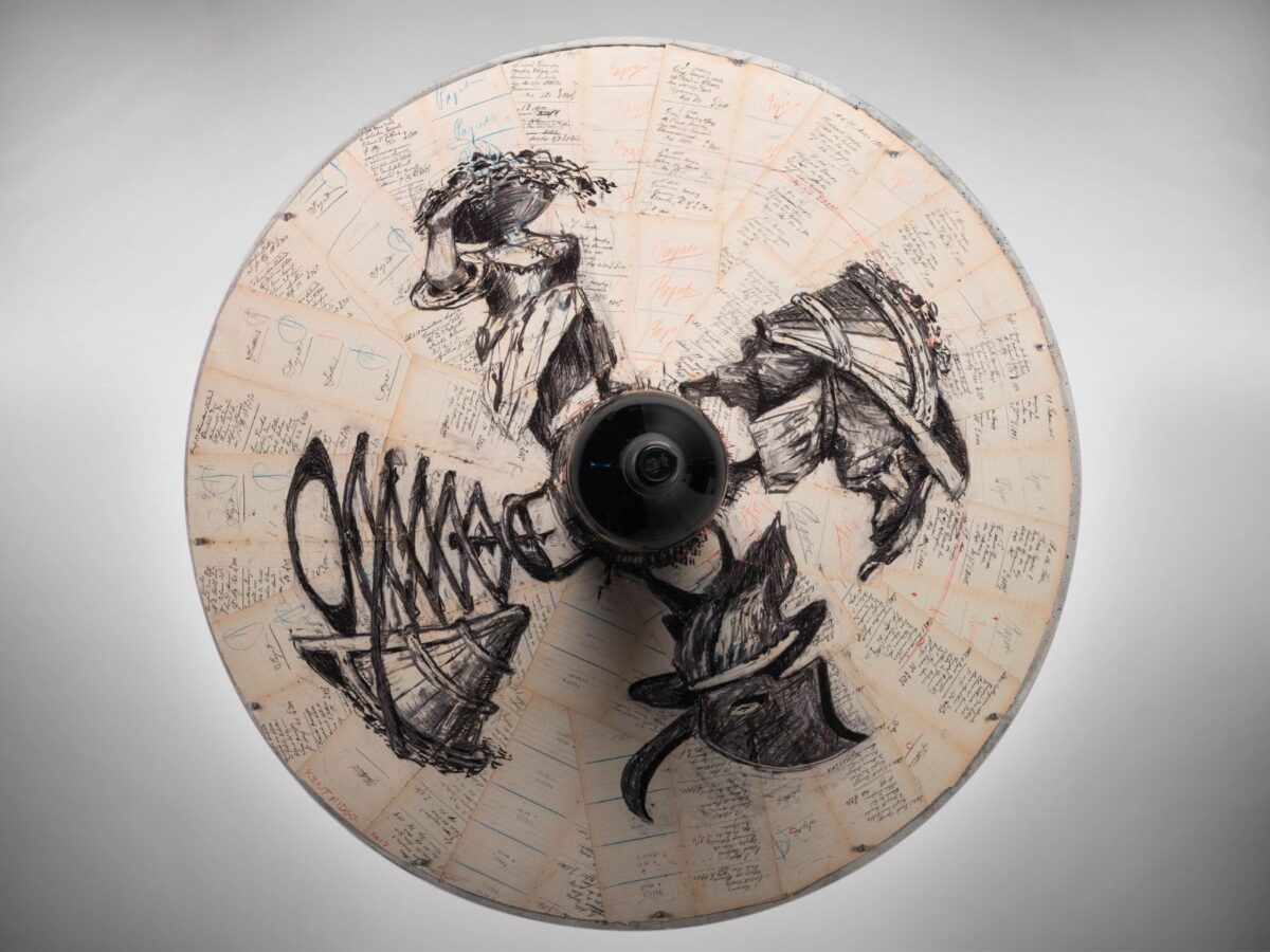 L’istallazione ieri da Sotehby’s ha incantato i presenti: la bottiglia magnum di Ornellaia al centro del tavolo rotondo con un’etichetta metallica che fa da specchio a tutti i disegni e schizzi dell’artista, raffiguranti uomini e agricoltori, cesoie, a simulare una processione, una danza, il movimento del lavoro dell’uomo sulla natura…bellissimo