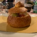 La sua cucina è il risultato della contaminazione di culture di altri territori apprese dai tanti viaggi, della conoscenza l’uso e il rispetto di materie prime straordinarie e di uno stile innovativo perfettamente calzante alla filosofia del Mercato del Suffragio, che ha brillato con Martina e l’atmosfera piacevole del locale.