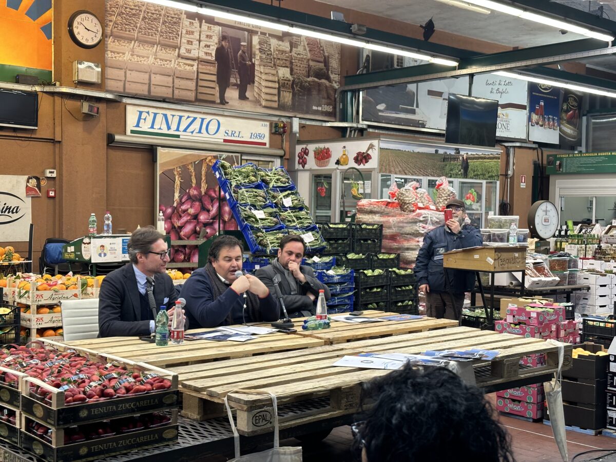Una ricchissima colazione made in Italy ha fatto da contorno alla conferenza stampa al mercato ortofrutticolo.Tra le eccellenze servite, Culatello di Spigaroli, Pane e focaccia di Longoni, dolci della pasticceria Besuschio, la mitica pizza a portafogli di Gino Sorbillo.