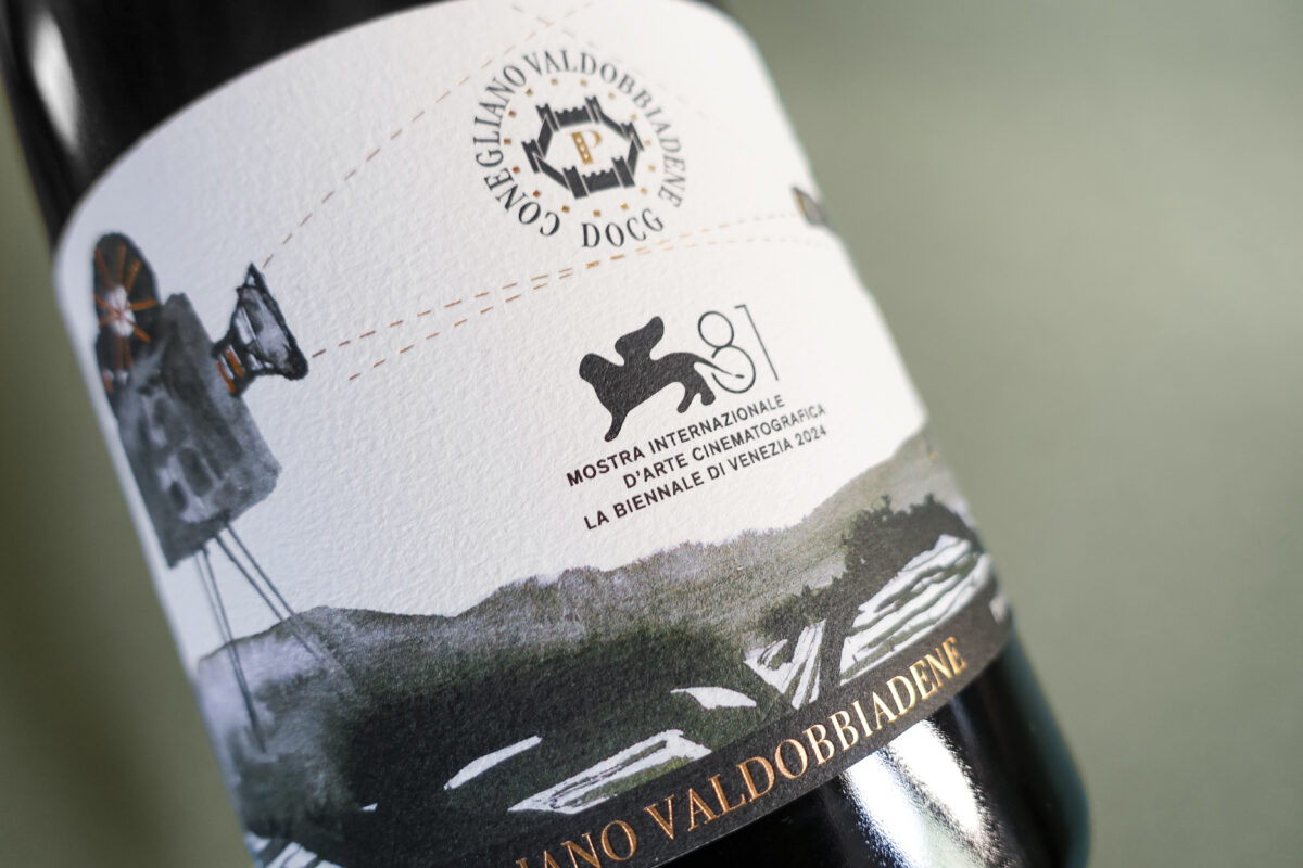 L’etichetta 2024, “Riprese collinari” , realizzata da mimicocodesign+DeRiva, vestirà su tutte le bottiglie durante la Mostra. Due telecamere “umanizzate” si aggirano tra i vigneti e, come osservatori silenziosi e attenti, catturano la magia delle Colline del Prosecco di Conegliano e Valdobbiadene, Patrimonio UNESCO e la diffondono in tutto il mondo.